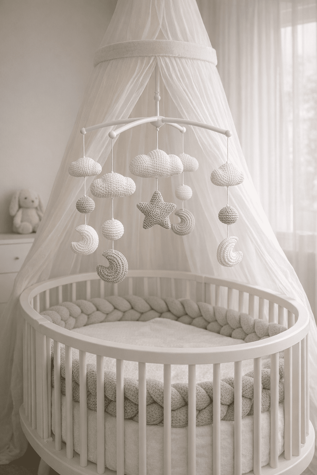 ✦ Ce mobile est-il vraiment fait main ? Oui, chaque mobile est entièrement réalisé à la main, au crochet, du début à la fin. Aucune production en série. Chaque pièce est unique, façonnée avec patience et avec le cœur, dans mon atelier en Mayenne.